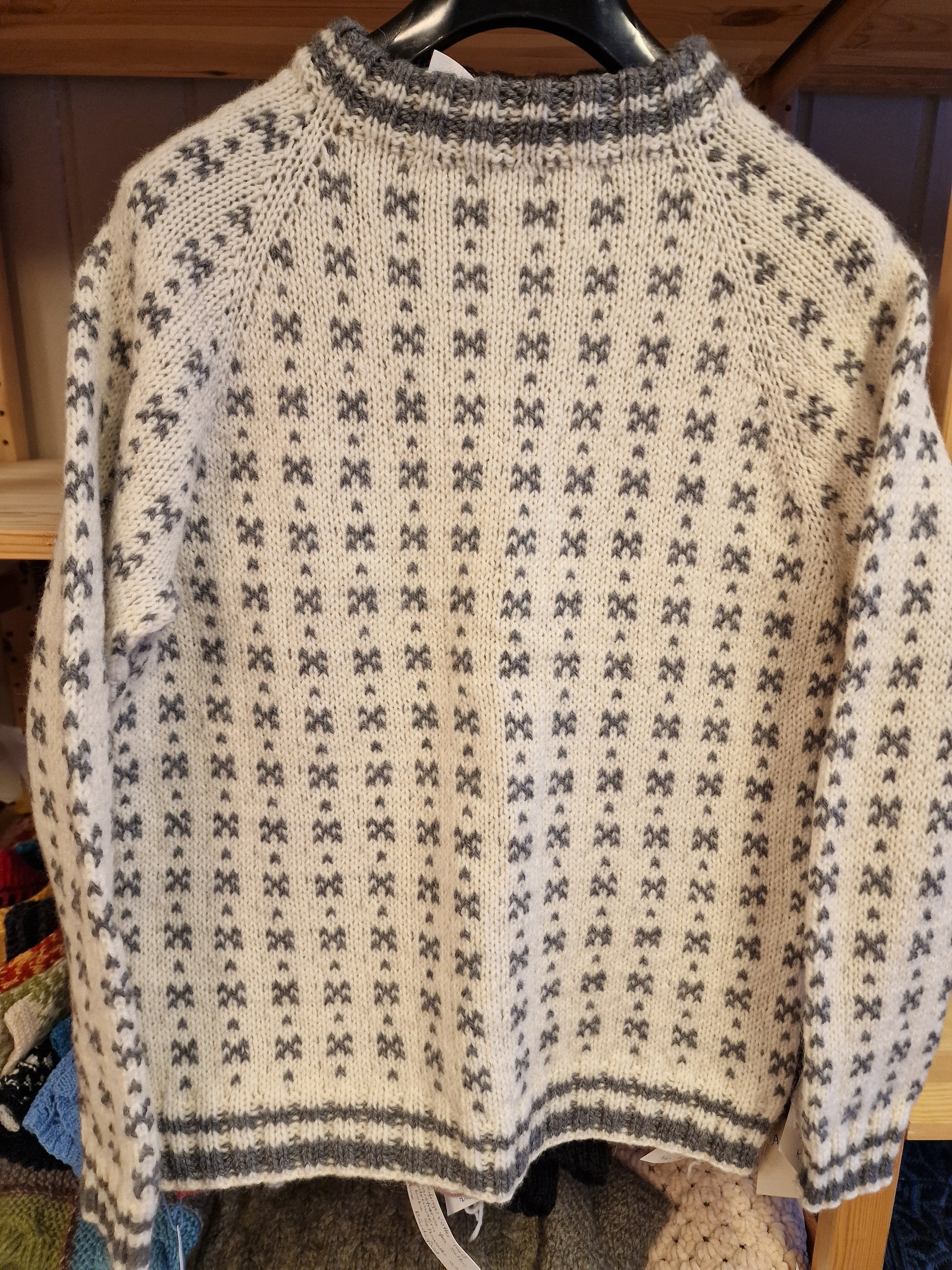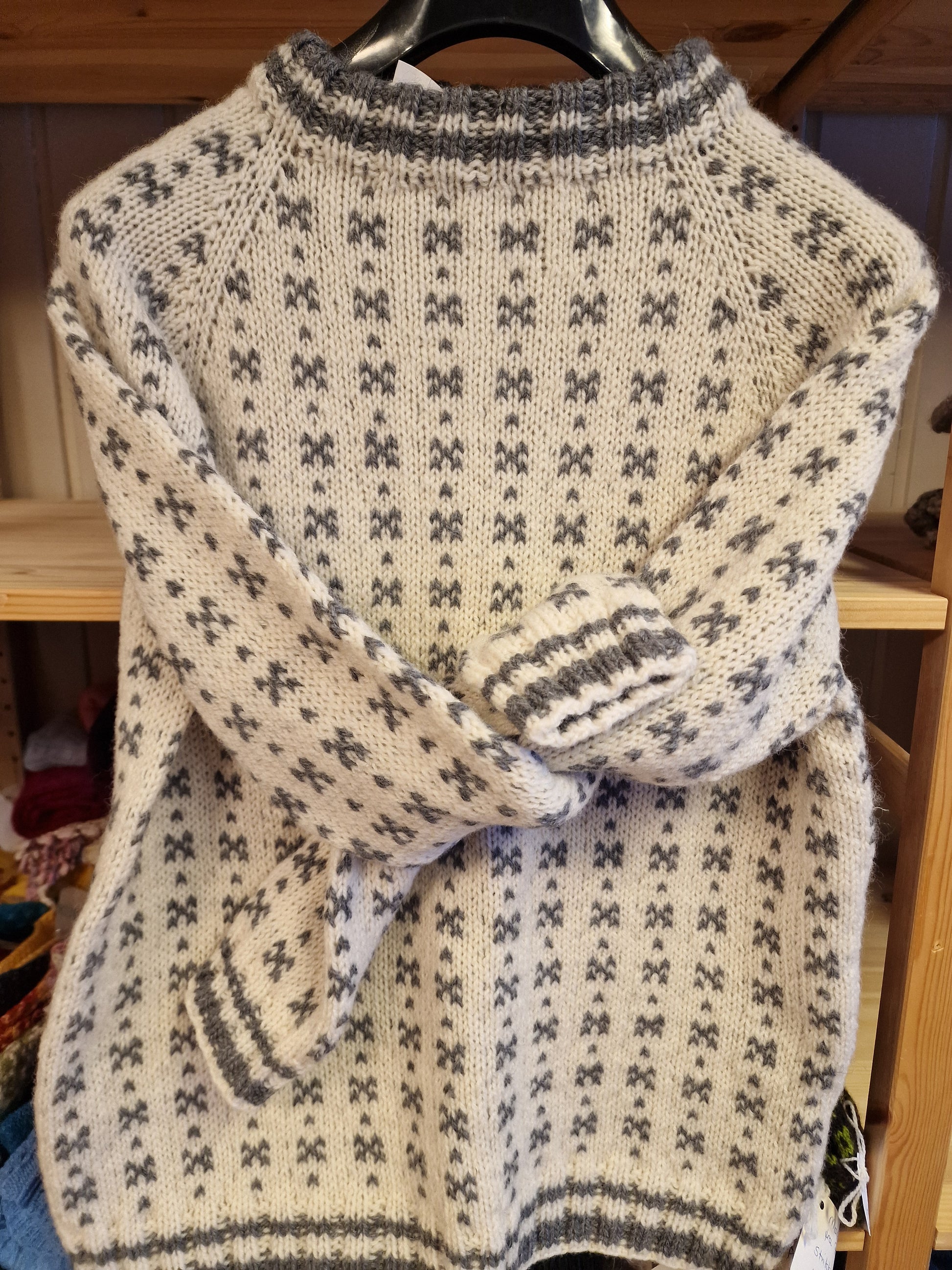 Enkel genser strikket i Alpakka wool. 70 prosent alpakka og 30 prosent ull.